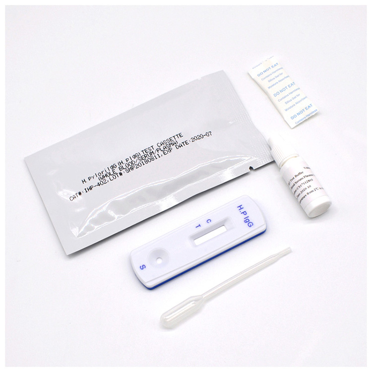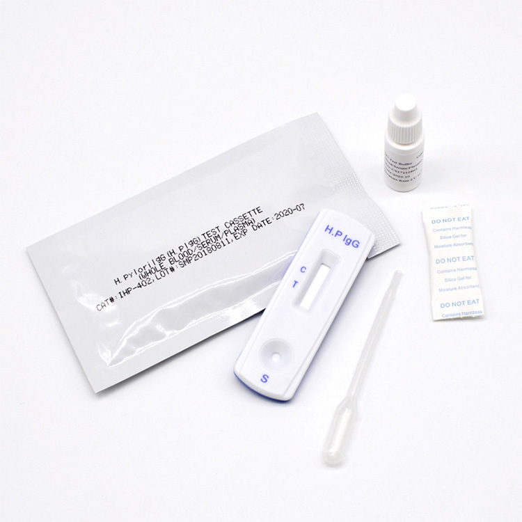 H.pylori antikor testi: H. pylori Antikor Hızlı Test Cihazı (Tam Kan/ Serum/ Plazma), insan tam kanında, serumunda veya plazmasında Helicobacter pylori'ye karşı spesifik IgM ve IgG antikorlarının kalitatif varsayımsal tespiti için hızlı bir görsel immünolojik testtir. örnekler. Bu kit, H. pylori enfeksiyonunun teşhisinde yardımcı olarak kullanılmak üzere tasarlanmıştır.
