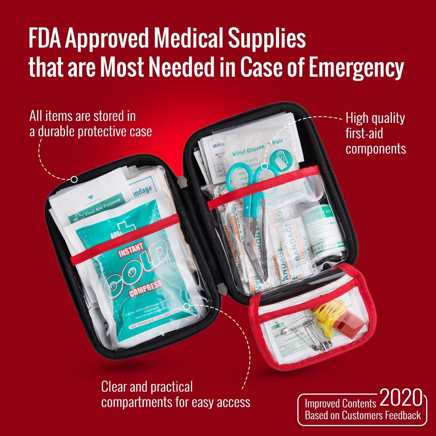 Araba için Kırmızı İlk Yardım Cebinin Özelliği: İçeriği düzenli tutan yüksek kaliteli taşınabilir bir sert çanta içinde paketlenmiş olarak gelir. Sadece doğru boyuta sahiptir, böylece gittiğiniz her yerde yanınızda taşıyabilirsiniz.